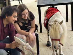 Miniature horses can make wonderful reading companions for children, offering both comfort and motivation during literacy activities. Their gentle nature and small size make them less intimidating than larger animals, creating a calm and welcoming presence that helps kids feel relaxed and supported while reading aloud. For many children, especially reluctant or struggling readers, the idea of reading to a horse can transform the experience into something exciting and enjoyable rather than stressful. The horses don’t judge mistakes, which builds confidence and encourages persistence. Programs where kids read to miniature horses combine the benefits of animal-assisted learning with literacy development, fostering a love of reading while also teaching empathy, patience, and respect for animals.